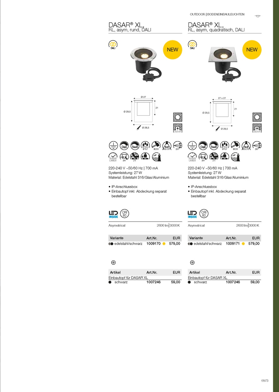 Weiterführende Links zu "LED Bodeneinbauleuchte DASAR XL, rund, , asymmetrisch, 70 Grad /40 Grad 27W"