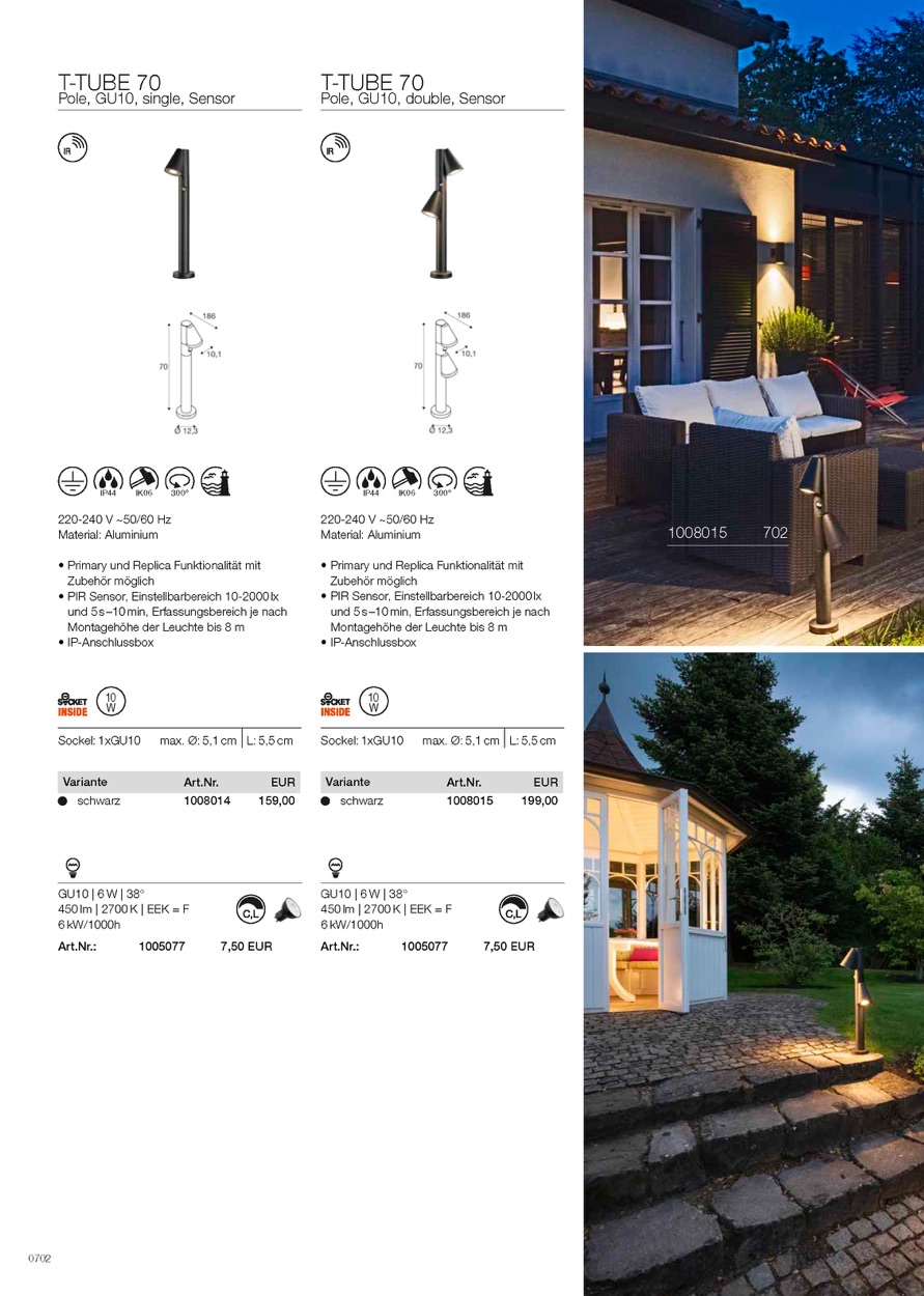 Weiterführende Links zu "Outdoor Stehleuchte T-TUBE 70 POLE GU10, SINGLE, mit Sensor, IP44, dimmbar"