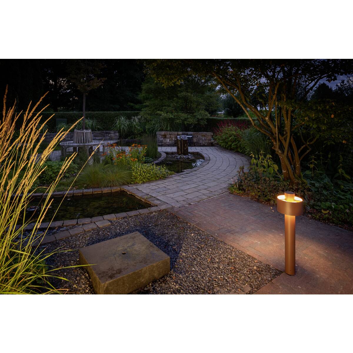 Die in schwarz und einer außergewöhnlichen Rostoptik verfügbaren PHOTONI Leuchten verströmen ein puristisches und dezentes Licht. Die Leuchtenfamilie ist jetzt zusätzlich im zylindrischen Design verfügbar. Durch ihre spezielle Oberflächenbehandlung und die IP68-geschützte Steckerverbindung fühlen sich die preisgekrönten Leuchten in Küstenregionen besonders wohl. Der klassische Schirm um die eigentliche Leuchte transportiert den Look klassischer Innenleuchten nach draußen und verleiht Garten- und Außenbereichen eine wohnliche Atmosphäre. Der schwebende Schirm erzeugt ein elegantes, puristisches und dezentes Licht.