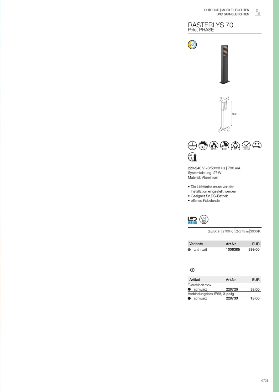Weiterführende Links zu "LED Outdoor Stehleuchte RASTERLYS POLE 70, eckig, 27W, 2700/3000K, 350lm, IP65"