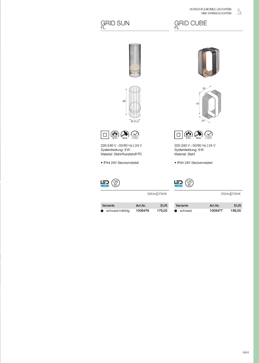 Weiterführende Links zu "LED Outdoor Stehleuchte GRID SUN, 8W, 2700K, 500lm, IP44/IP65, schwarz"