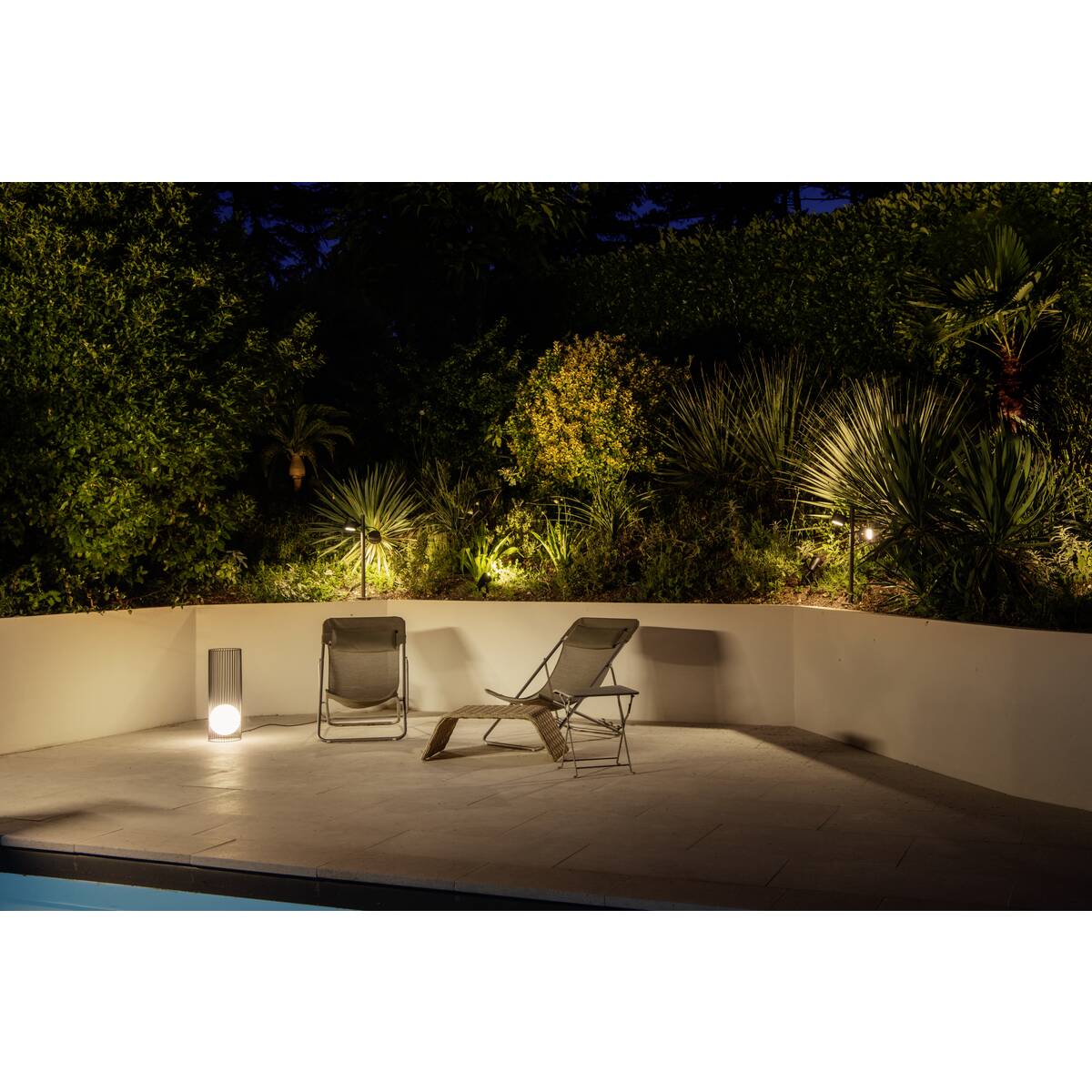 Die GRID SUN Stehleuchte kombiniert ein ruhiges, reduziertes Design mit einer eleganten Lichtwirkung – ideal für den Einsatz in modernen Outdoor-Lounges und privaten Gärten. Die kugelförmige Lichtquelle scheint dabei schwebend von zylindrisch angeordneten Rattanstäben umgeben – ein Effekt, der Leichtigkeit und architektonische Klarheit vereint. Die Leuchte ist mit einem 24 V-Steckertrafo ausgestattet.