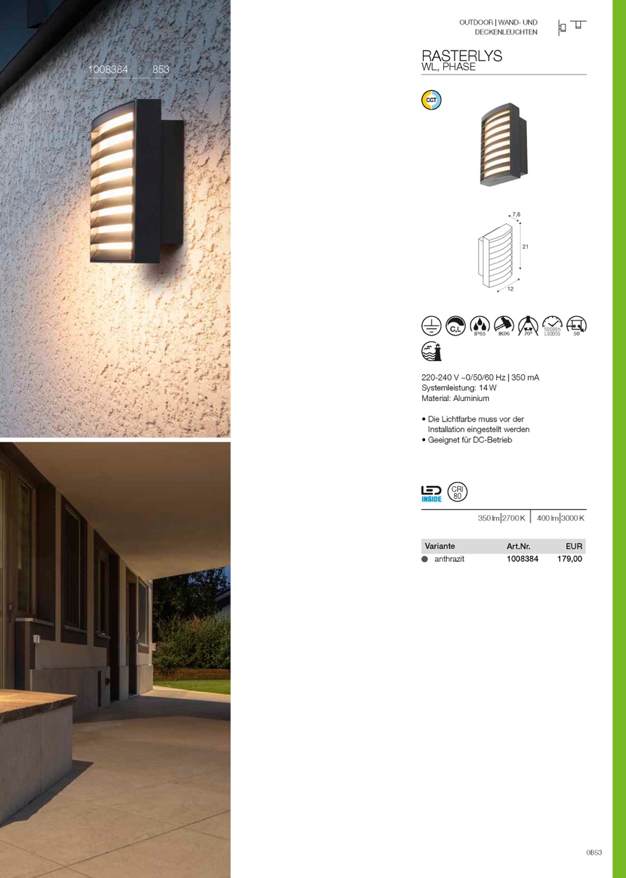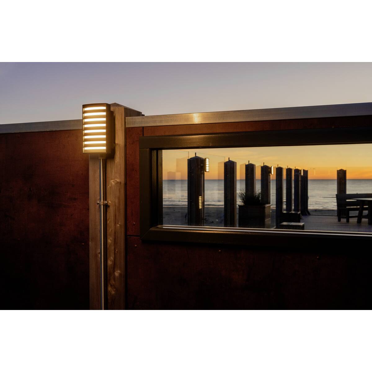 Die RASTERLYS Serie kombiniert modernes Design mit hoher Funktionalität. Ob als Einzelleuchte oder in Reihe montiert – die Wand- und Pollerleuchten sorgen nicht nur für eine effektive Ausleuchtung, sondern setzen zugleich ein ästhetisches Statement an Fassaden, Eingängen, Terrassen oder in Außenbereichen von Gastronomiebetrieben.Mit warmweißem Licht (2.700 K / 3.000 K via CCT-Switch) schaffen sie stimmungsvolle Akzente im Außenbereich. Dank IP65 undsalzluftbeständiger Oberfläche ist RASTERLYS besonders robust und langlebig. Die Triac-Dimmfunktion und der Loop-in-/Loop-out-Anschluss ermöglichen eine flexible und effiziente Installation.