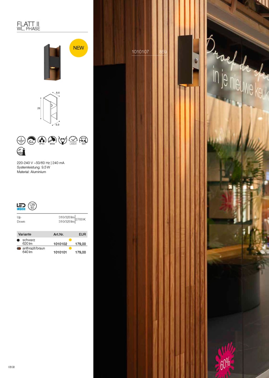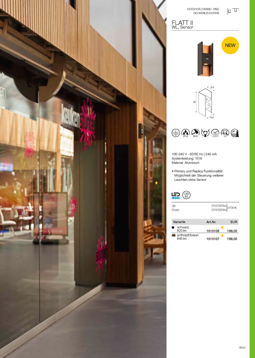 Die FLATT II Leuchtenfamilie kombiniert modernes Design mit hoher Funktionalität. Die Wandaufbau- und Pollerleuchten eignen sich ideal zur akzentuierten Fassaden- und Wegebeleuchtung. Mit seeluftbeständiger Beschichtung, Dark-Sky-konformer Lichtverteilung (ULOR <2 %), 2.700 K warmweißem Licht und wahlweise Sensortechnik bieten sie flexible Lösungen für Wohnbereiche und HoReCa.