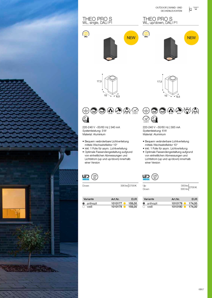 Die THEO PRO Wandleuchtenserie vereint klares, eckiges Design mit moderner Technik für eine präzise Akzentbeleuchtung. In zwei Größen und Leistungsklassen, mit Single- oder Up/Down-Licht erhältlich, bieten sie dank DALI-Steuerung und Seeluftbeständigkeit vielseitige Lösungen für moderne Fassadenbeleuchtung im Außenbereich.