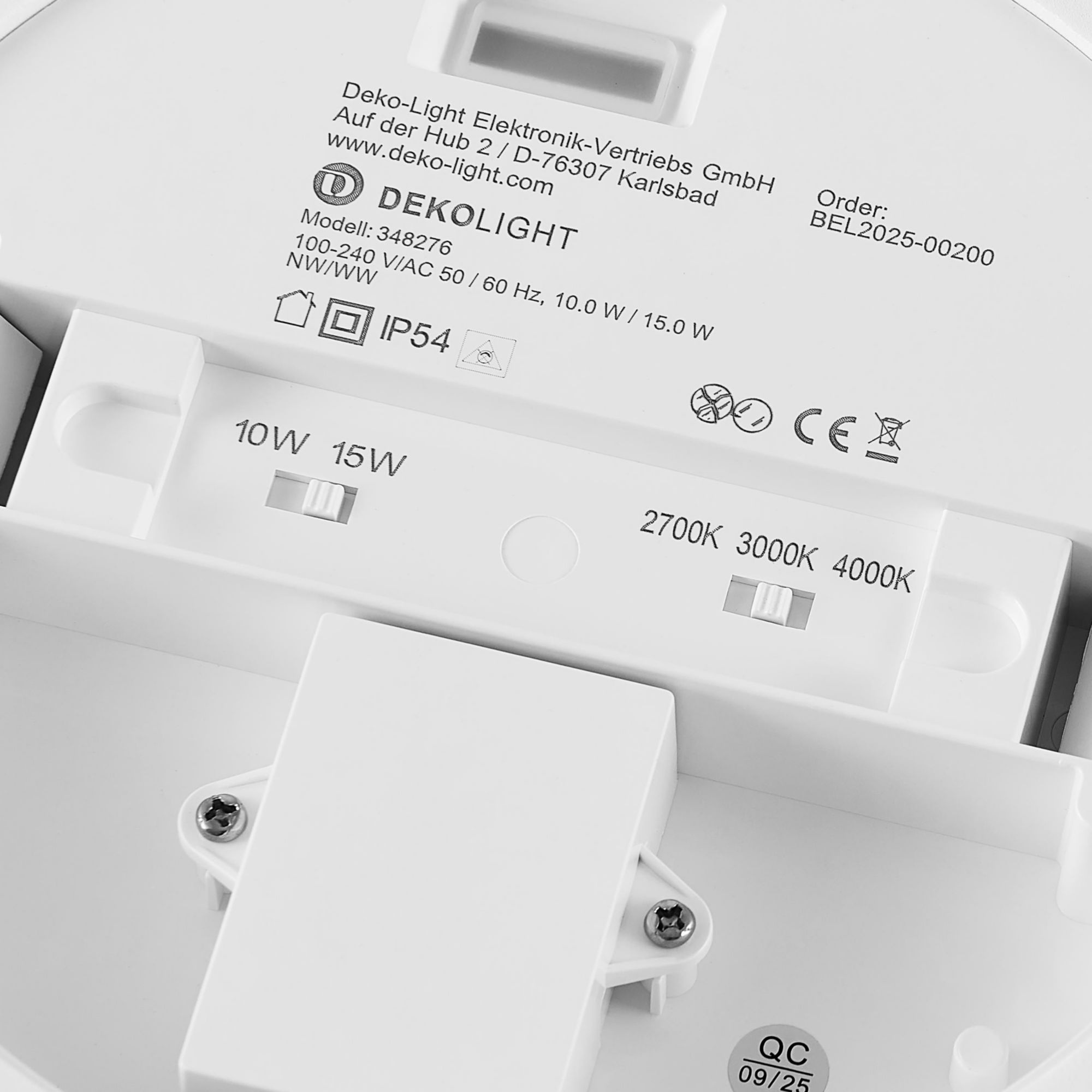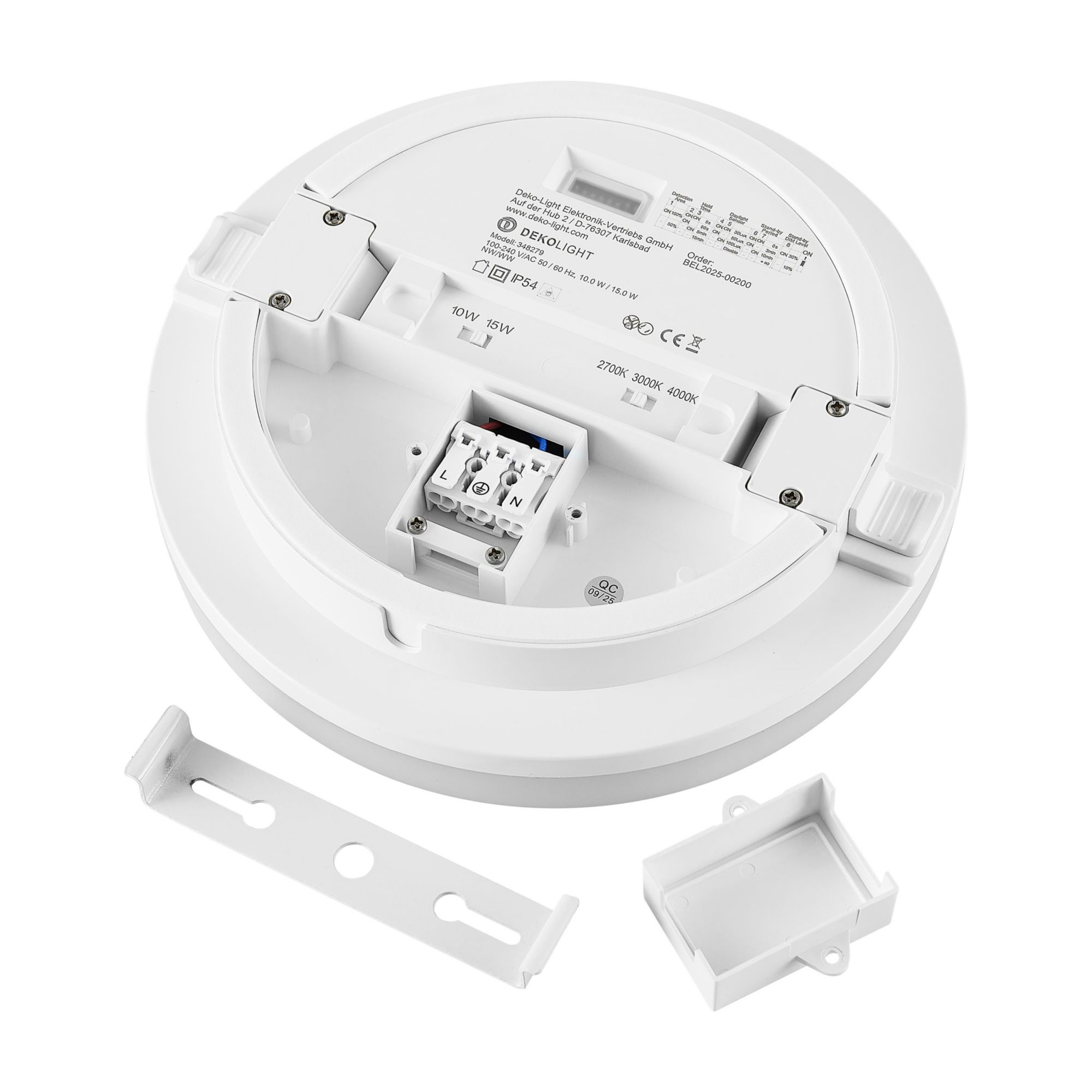 Deko-Light, Decken- und Wandaufbauleuchte, Altais 2 Round, 15 W, 2700/3000/4000 K, Weiß, 1650 lm, Eingangsspannung: 100-240 V/AC, Dimmbar: Nein, Polycarbonat, IP 54, Höhe: 52 mm, Durchmesser: 220 mm, Arbeitstemperatur: -10 bis 50 °C, Lebensdauer L70 / B50: 50000 h