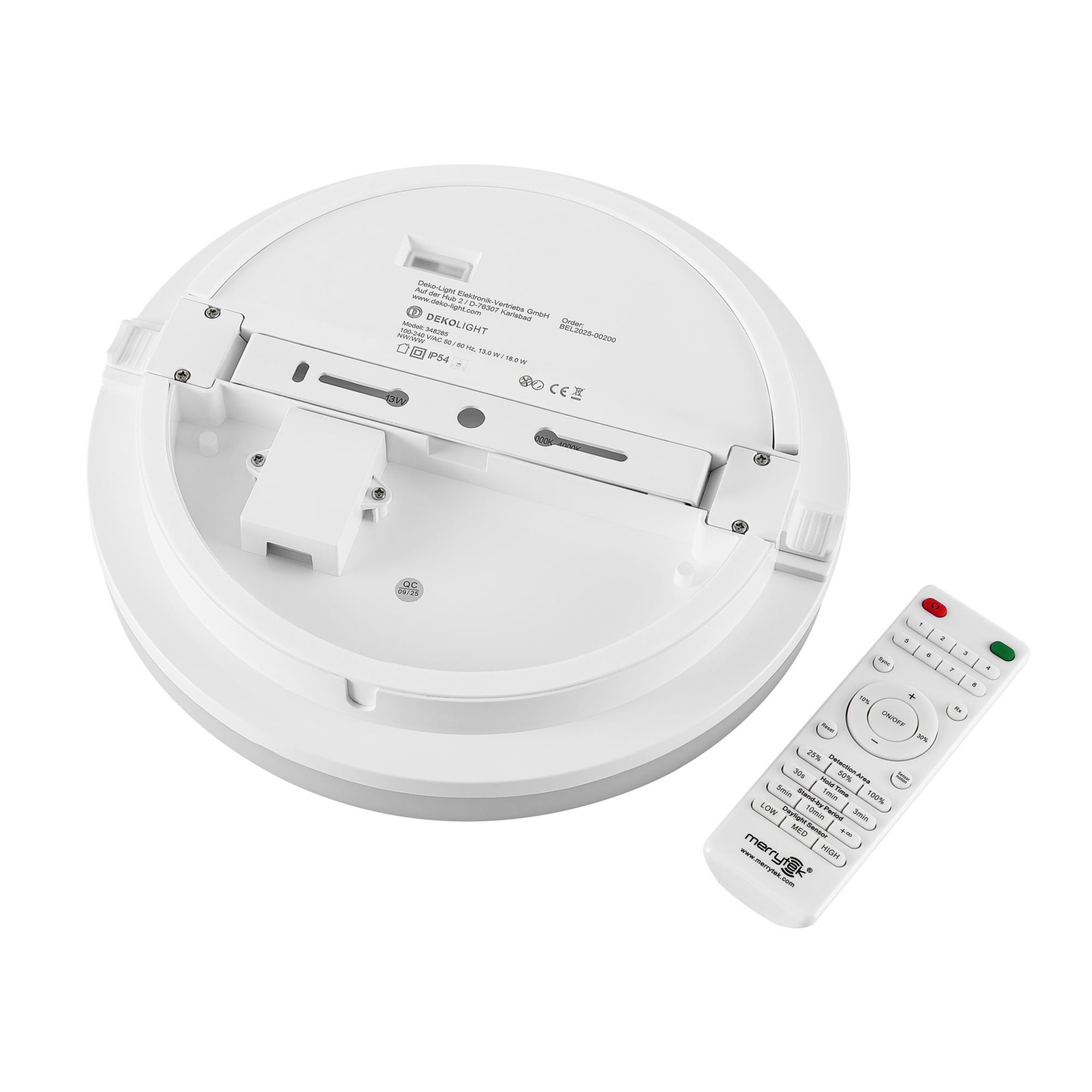 Deko-Light, Decken- und Wandaufbauleuchte, Altais 2 Round, Motion MS, 18 W, 2700/3000/4000 K, Weiß, 1980 lm, Eingangsspannung: 100-240 V/AC, Dimmbar: Nein, Polycarbonat, IP 54, Höhe: 52 mm, Durchmesser: 280 mm, Arbeitstemperatur: -10 bis 50 °C, Lebensdauer L70 / B50: 50000 h