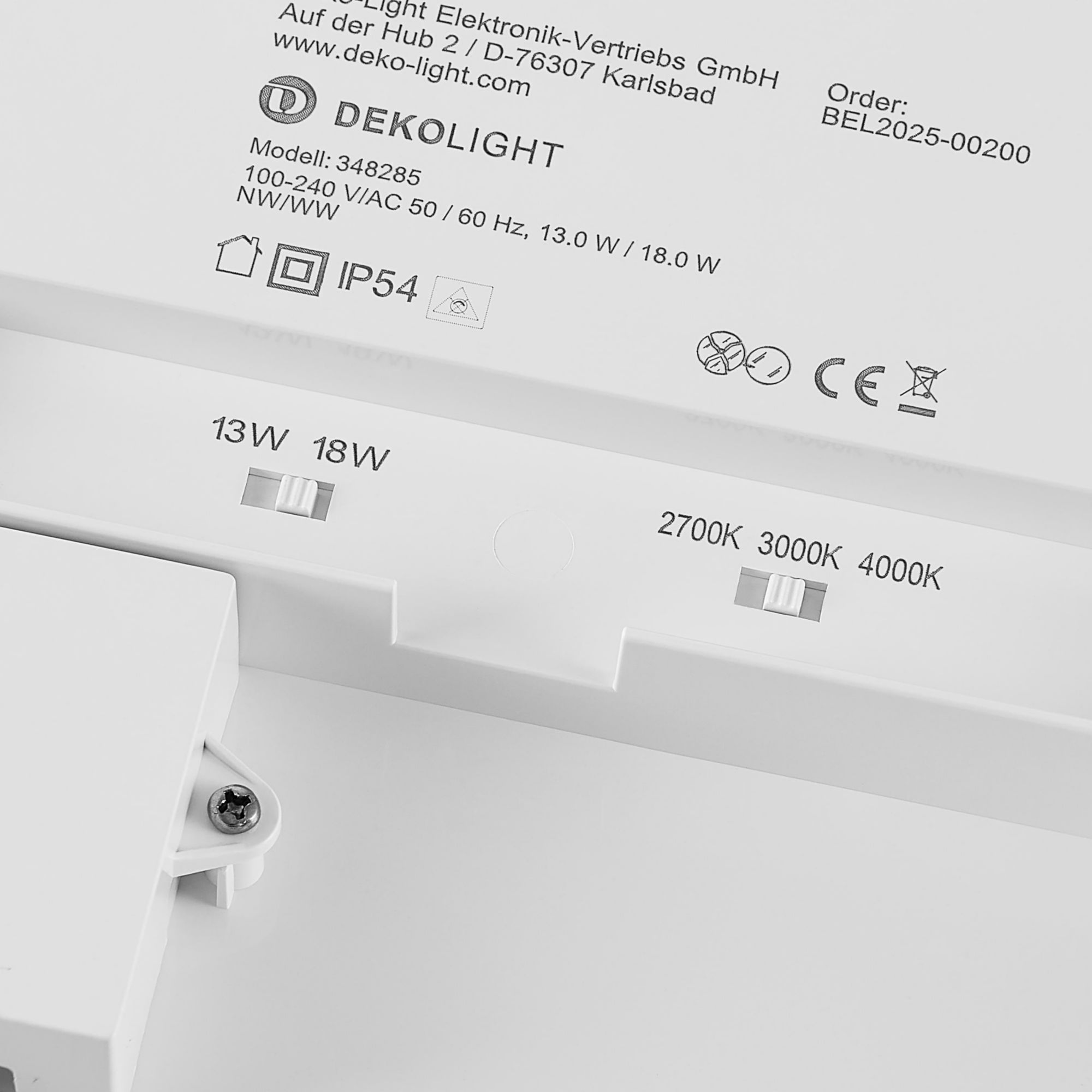 - Lichtfarbtemperatur (Kelvin): 2700/3000/4000