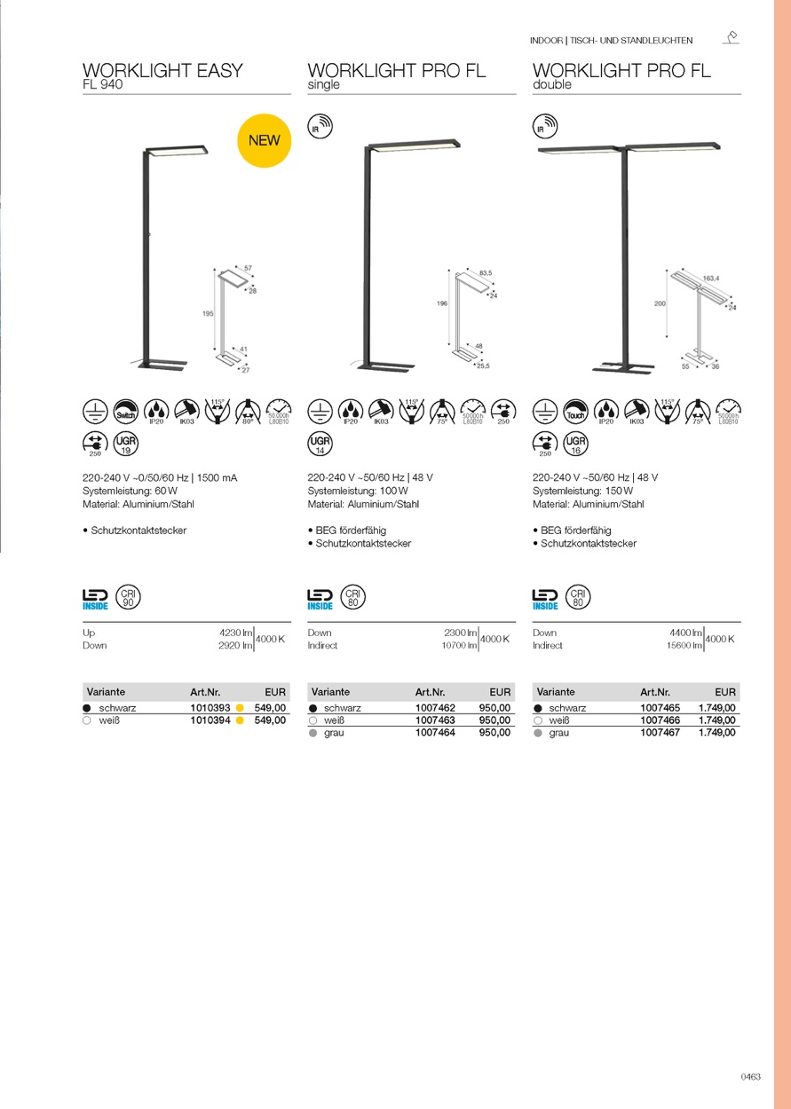 Weiterführende Links zu "LED Stehleuchte WORKLIGHT EASY FL 940, 60W, 4000K, 4230lm, IP20, dimmbar, mit"