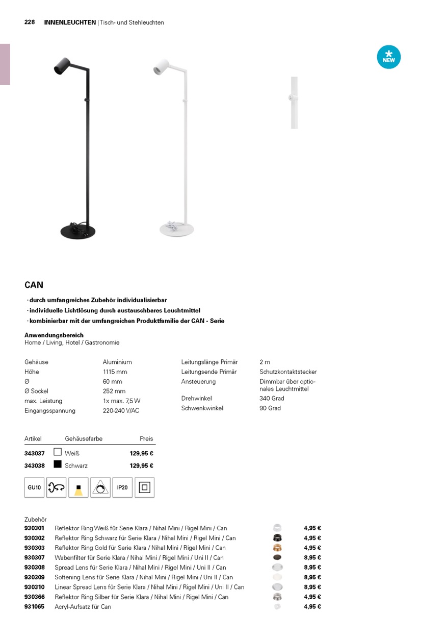 - Ansteuerung: Dimmbar über optionales Leuchtmittel