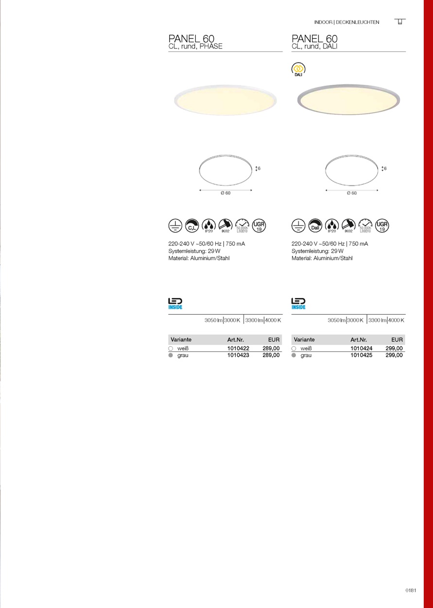 Weiterführende Links zu "LED Deckenleuchte PANEL 60, rund, 90, Grad 29W, 3000/4000K, 3050lm, IP20"