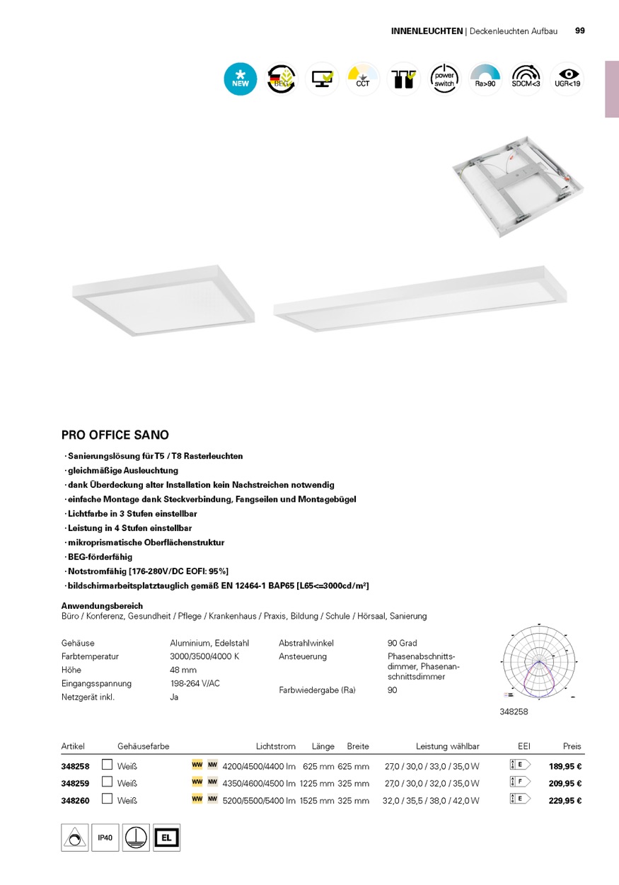 Weiterführende Links zu "Deko-Light Deckenaufbauleuchte, Pro Office Sano 1225, 35W, DIM, 3000/4000K, weiß, Aluminium, Weiß"