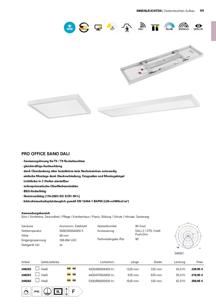 - Ansteuerung: DALI 2.0 / DT6, Intelli Push-Dim