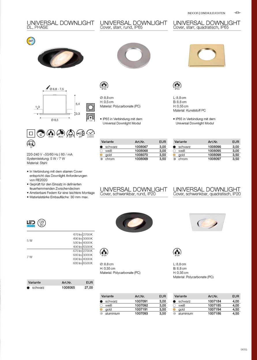 Weiterführende Links zu "LED Einbaustrahler UNIVERSAL DOWNLIGHT PHASE, IP20, 5/7W (multi) 2700-6500K"