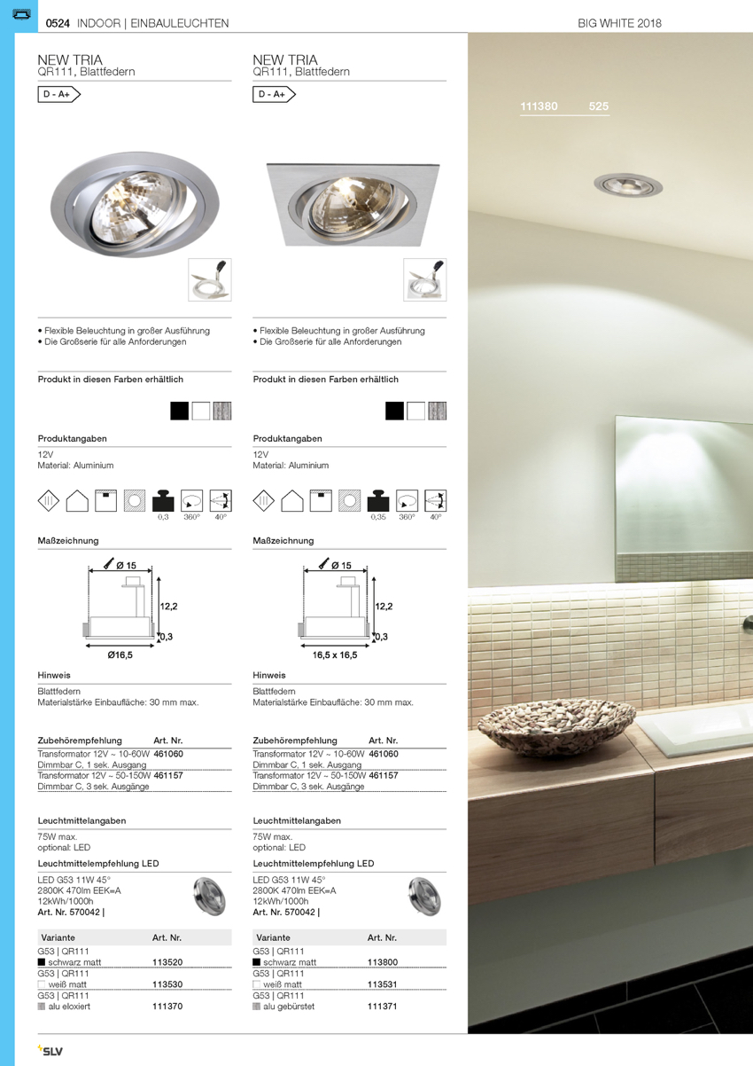 Weiterführende Links zu "NEW TRIA I ES111 Downlight, eckig, mattweiss, max. 75W, inkl. Blattfedern"