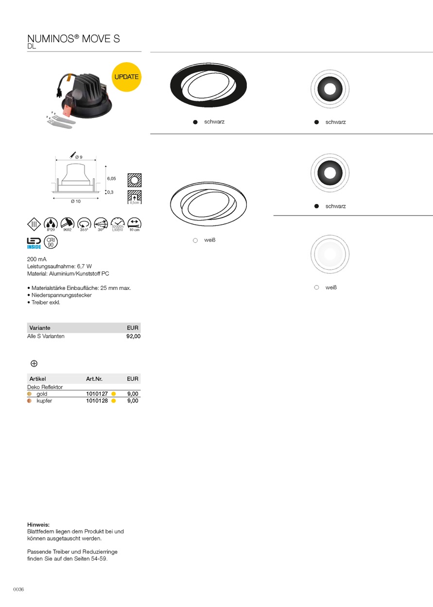 Weiterführende Links zu "LED Deckeneinbauleuchte NUMINOS MOVE S, rund, 6, 7W, IP20, dimmbar, 20 Grad"