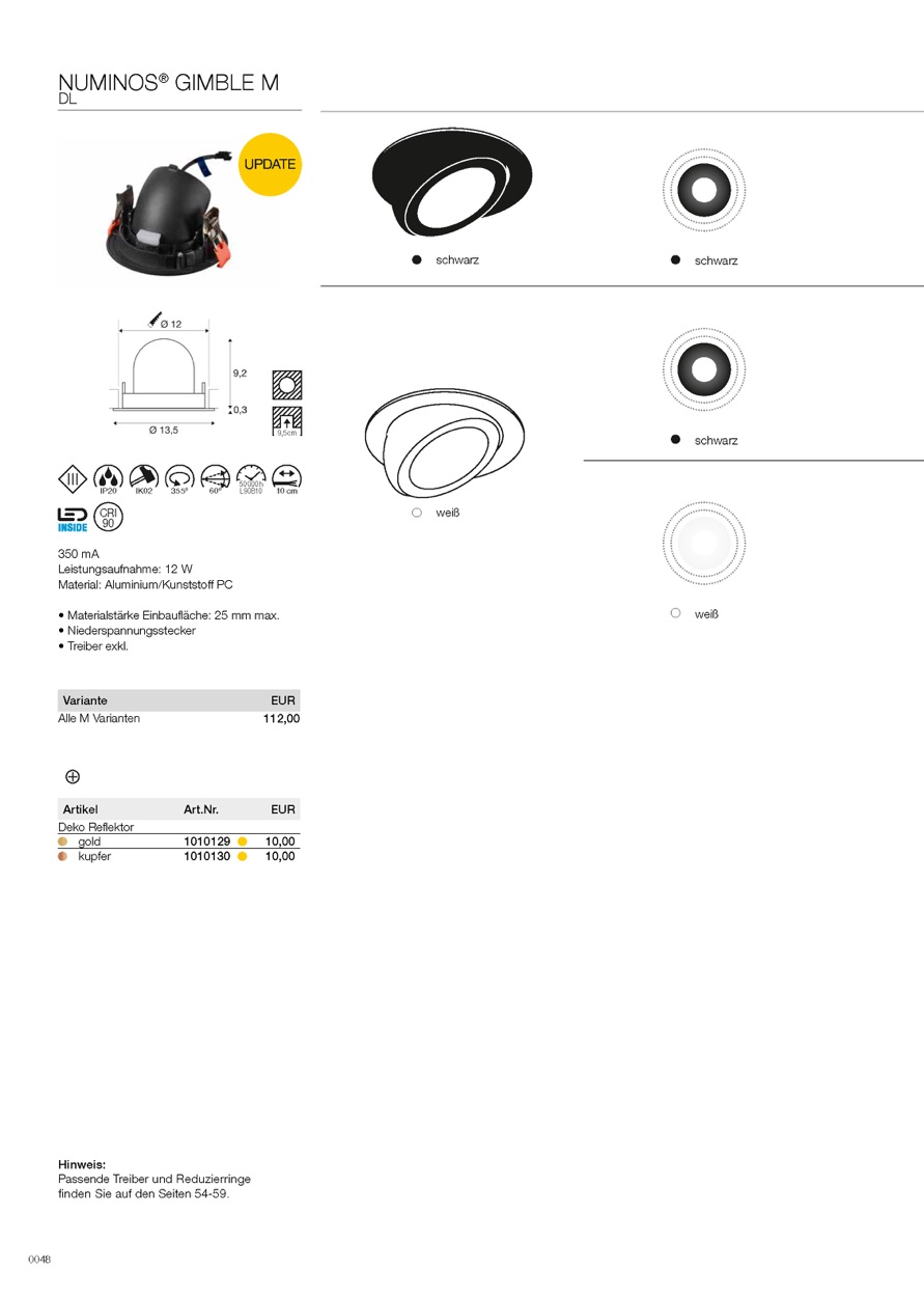 Weiterführende Links zu "LED Deckeneinbaustrahler NUMINOS GIMBLE M, 12W, IP20, dimmbar, 20 Grad , 2700K"