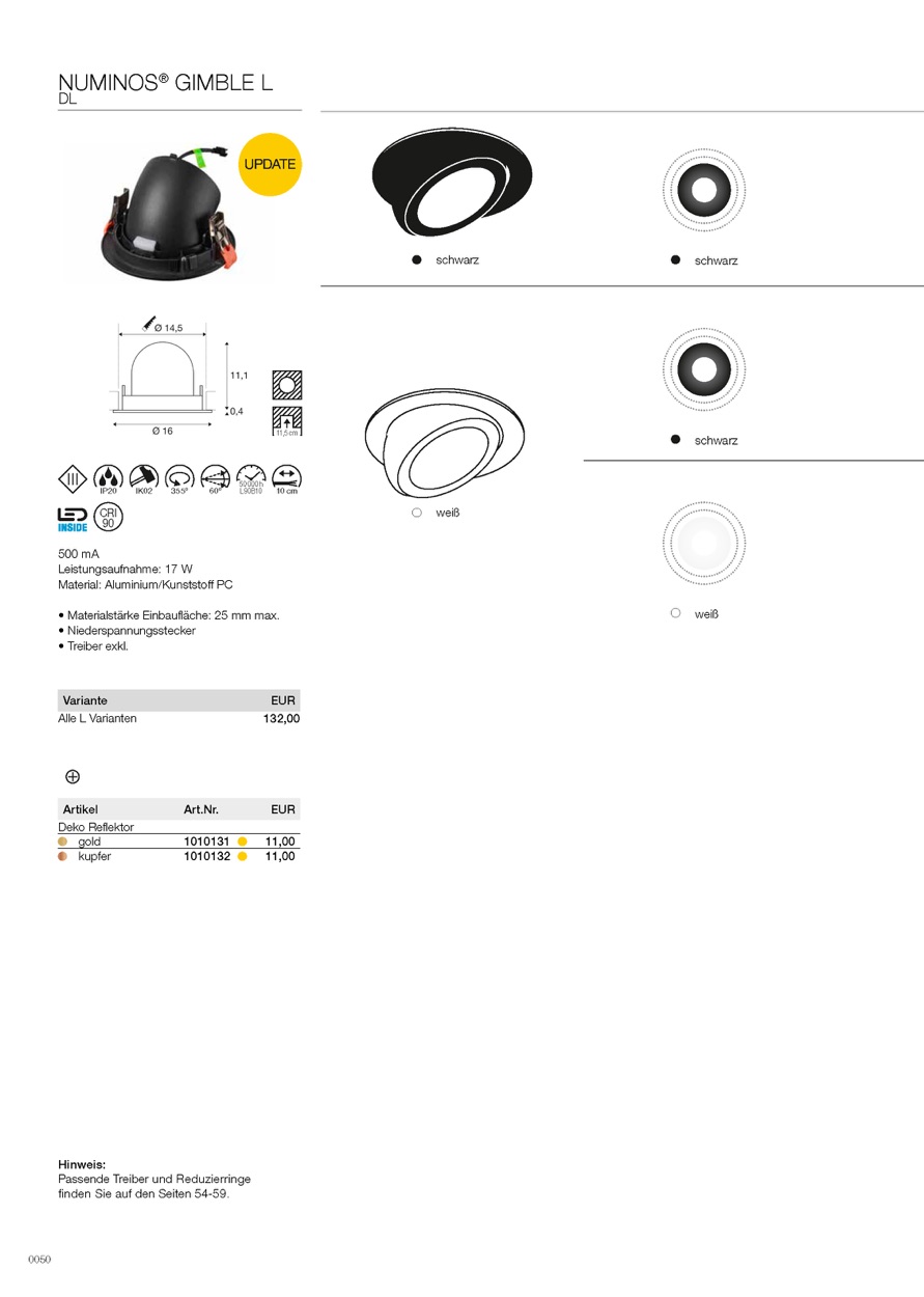 Weiterführende Links zu "LED Deckeneinbaustrahler NUMINOS GIMBLE L, rund, 17W, IP20, dimmbar, 20 Grad"