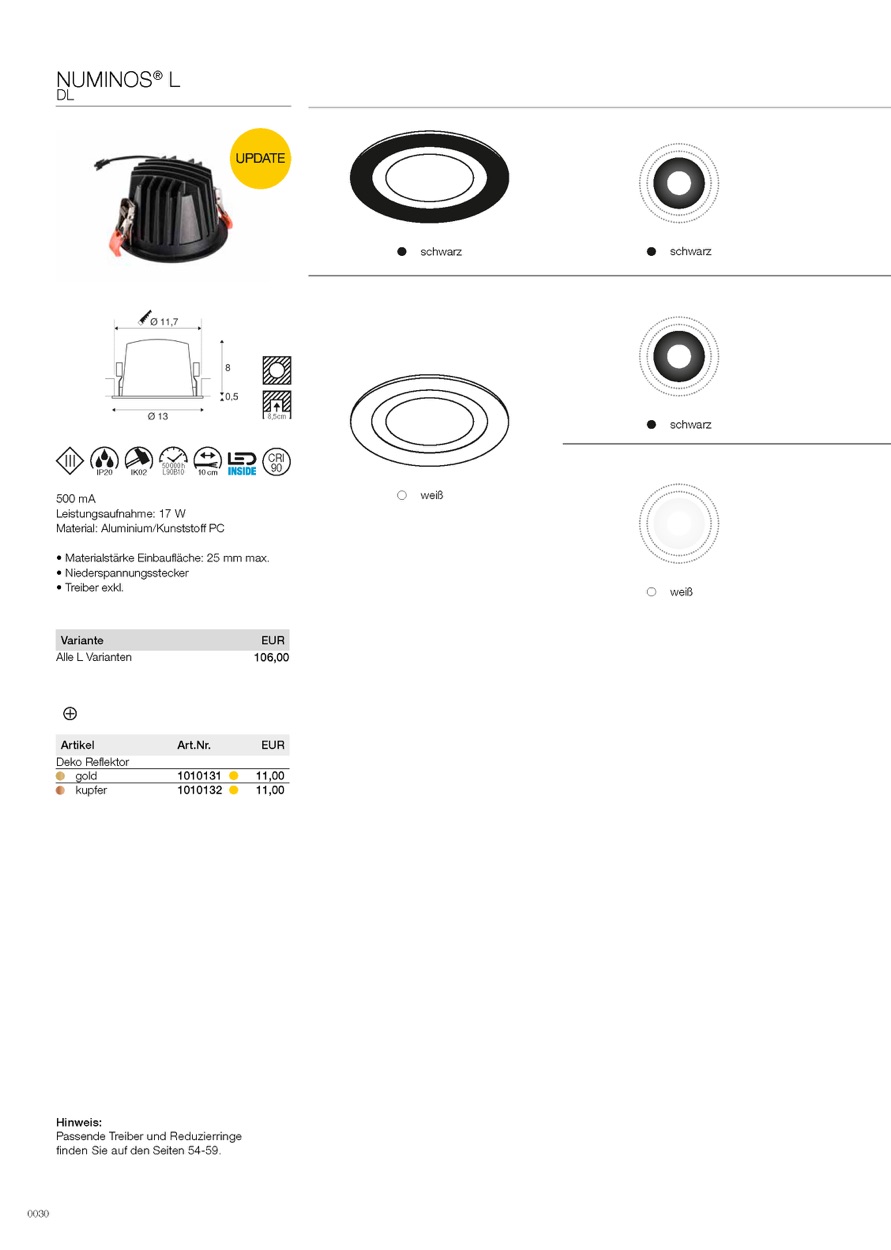 Weiterführende Links zu "LED Deckeneinbauleuchte NUMINOS L, rund, 17W, IP20, dimmbar, 20 Grad , 2700K"