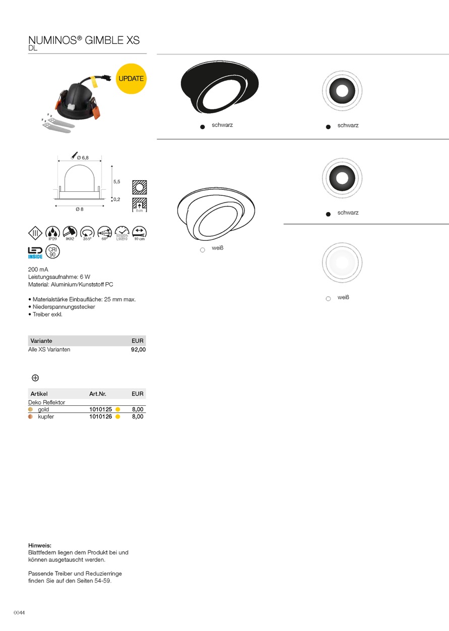 Weiterführende Links zu "LED Deckeneinbaustrahler NUMINOS GIMBLE XS, rund, 6, 9W, IP20, dimmbar, 20 Grad"