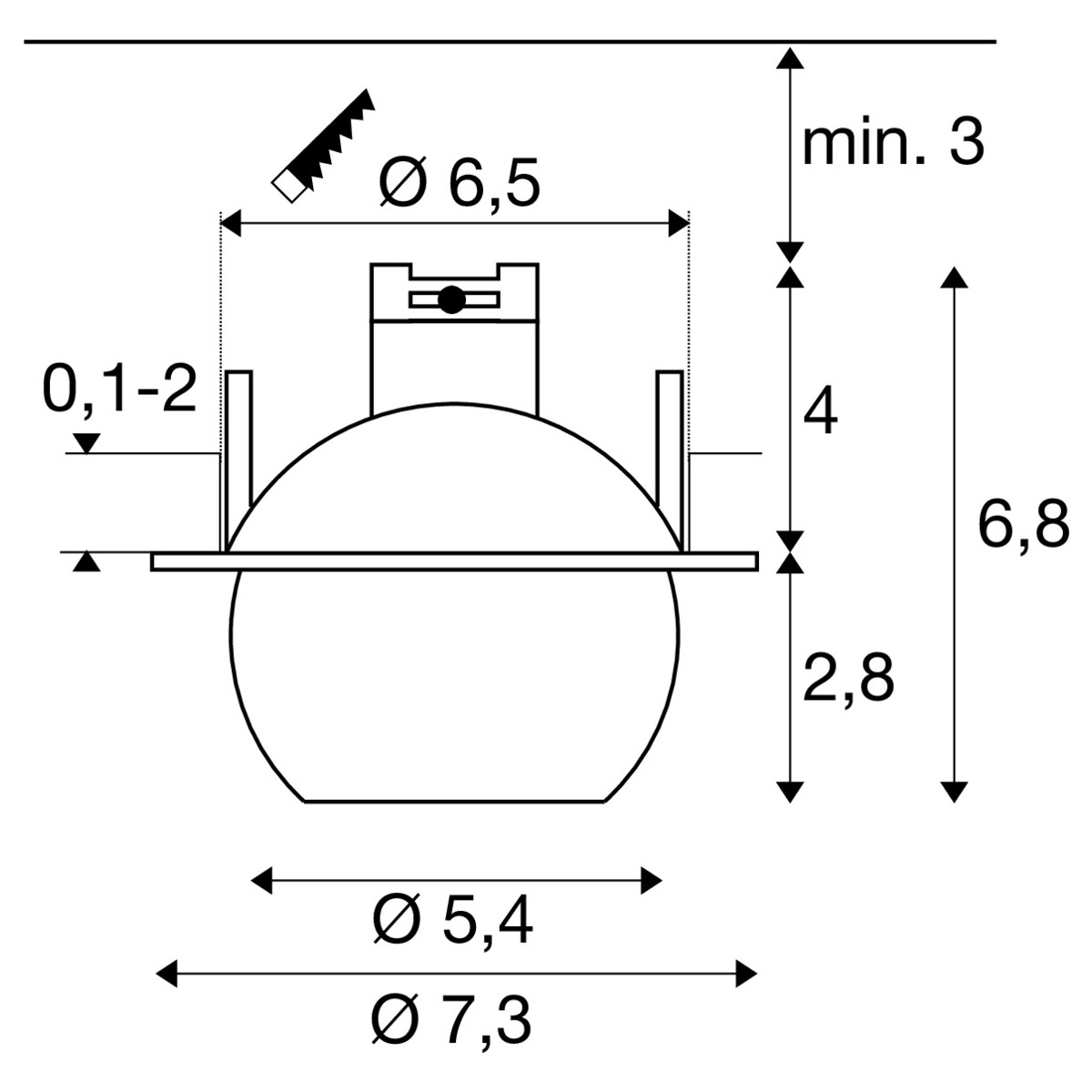 Abmessungen: Höhe: 6,80 cm Produkt ø: 7,30 cm Einbaumaße: Tiefe: 7,00... mehr