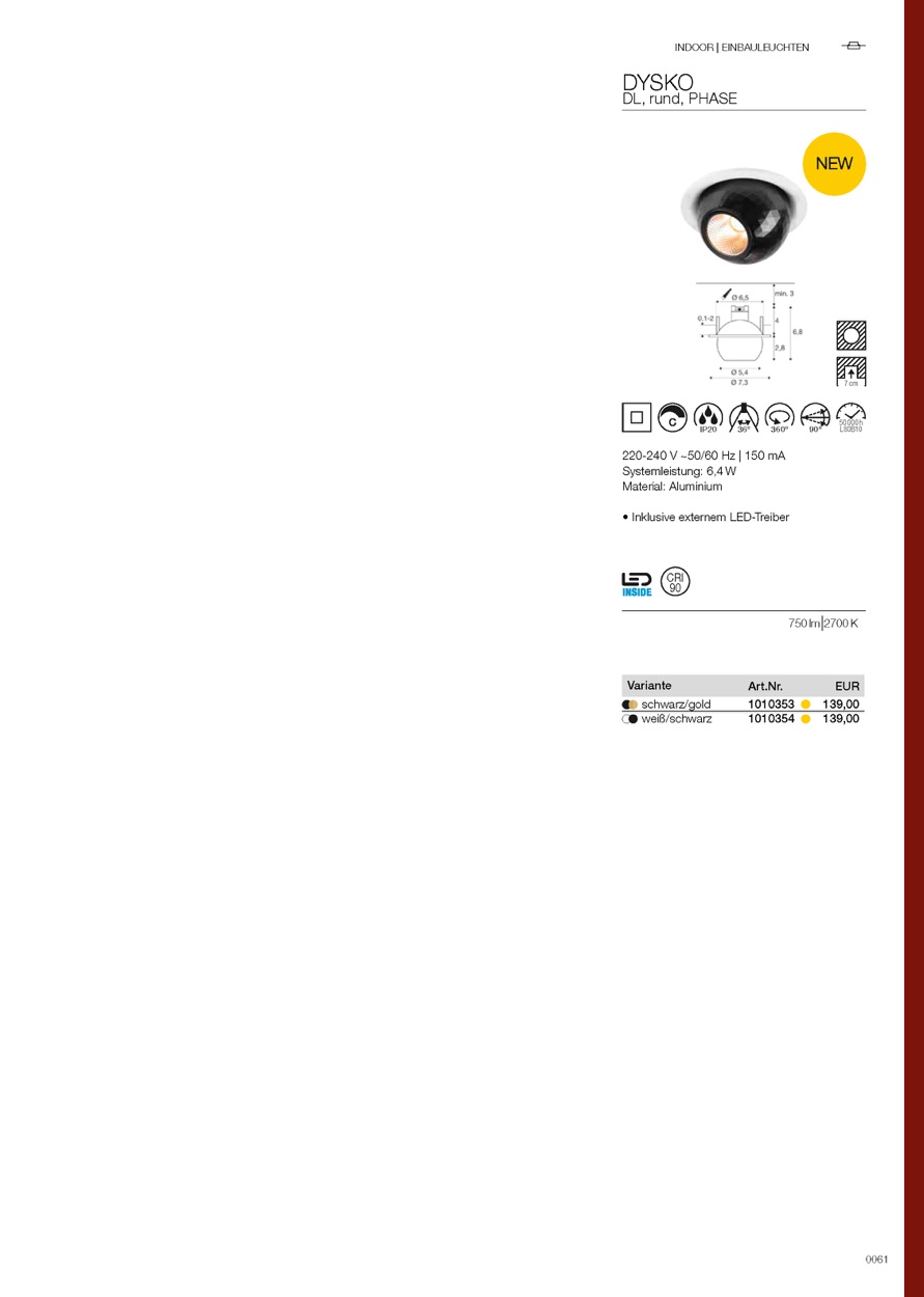 Weiterführende Links zu "LED Deckeneinbauleuchte DYSKO, rund, 36 Grad , 6, 4W, 2700K, 750lm, IP20"