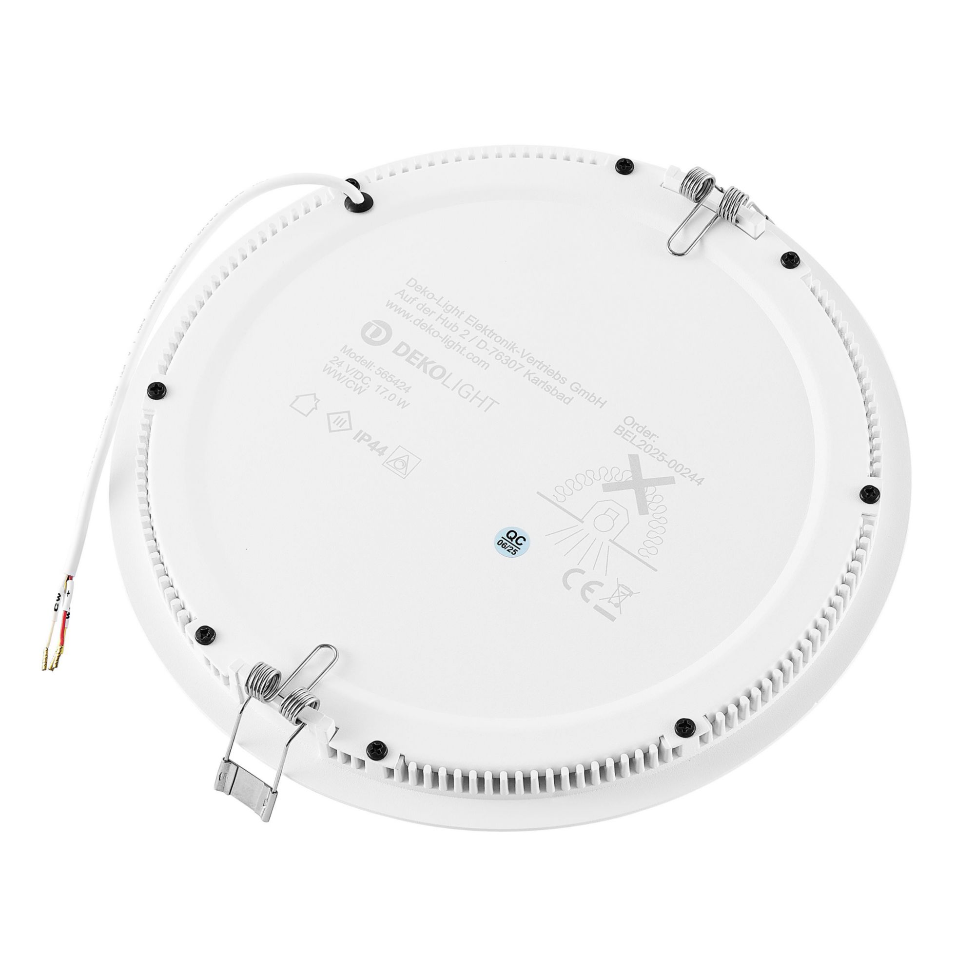 Deko-Light, Downlight, Anik CCT Round 220, 17 W, DIM, 2700-6500 K, Weiß, 1850 lm, Spannungskonstant, Eingangsspannung: 24 V/DC, Dimmbar: Ja, Dimmbar über optionalen Controller, Aluminium, Stahl, PMMA, Pulverbeschichtet, Feinstruktur, Matt, IP 20, IP 44, Höhe: 20 mm, Durchmesser: 234 mm, Ausschnittsmaß Durchmesser: 220 mm, Arbeitstemperatur: -10 bis 45 °C, Lebensdauer L70 / B50: 50000 h