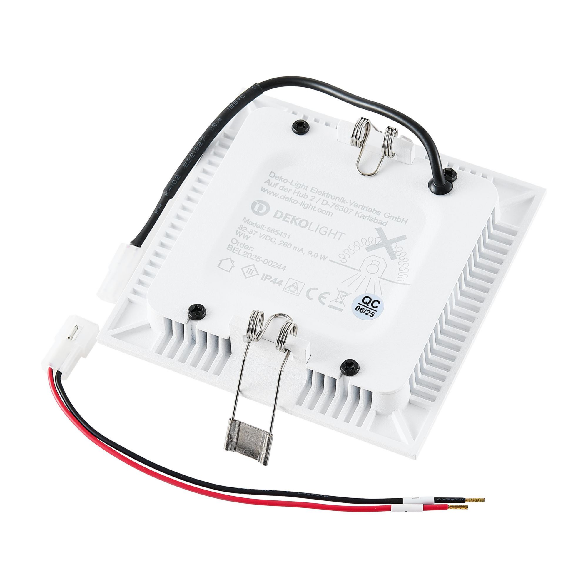 Deko-Light, Downlight, Anik Square 90, 9 W, DIM, 3000 K, Weiß, 1050 lm, Stromkonstant, Eingangsspannung: 32-37 V/DC, Bemessungsstrom: 260 mA, Dimmbar: Ja, Dimmbar über optionales Netzgerät, Aluminium, Stahl, PMMA, Pulverbeschichtet, Feinstruktur, Matt, IP 20, IP 44, Länge: 110 mm, Breite: 110 mm, Höhe: 20.5 mm, Ausschnittssmaß Länge: 90 mm, Ausschnittssmaß Breite: 90 mm, Arbeitstemperatur: -10 bis 45 °C, Lebensdauer L70 / B50: 50000 h