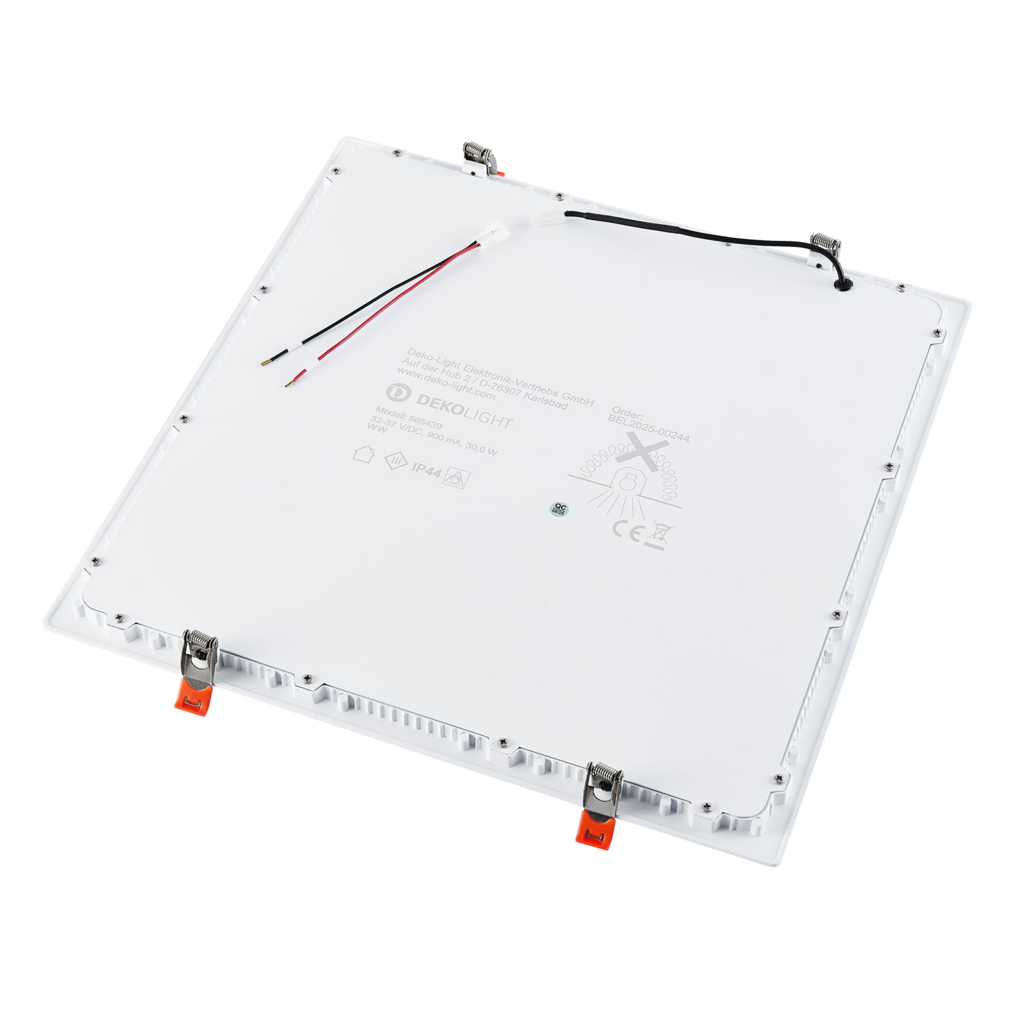 Deko-Light, Downlight, Anik Square 380, 30 W, DIM, 2700 K, Weiß, 3850 lm, Stromkonstant, Eingangsspannung: 32-37 V/DC, Bemessungsstrom: 900 mA, Dimmbar: Ja, Dimmbar über optionales Netzgerät, Aluminium, Stahl, PMMA, Pulverbeschichtet, Feinstruktur, Matt, IP 20, IP 44, Länge: 398 mm, Breite: 398 mm, Höhe: 20 mm, Ausschnittssmaß Länge: 380 mm, Ausschnittssmaß Breite: 380 mm, Arbeitstemperatur: -10 bis 45 °C, Lebensdauer L70 / B50: 50000 h