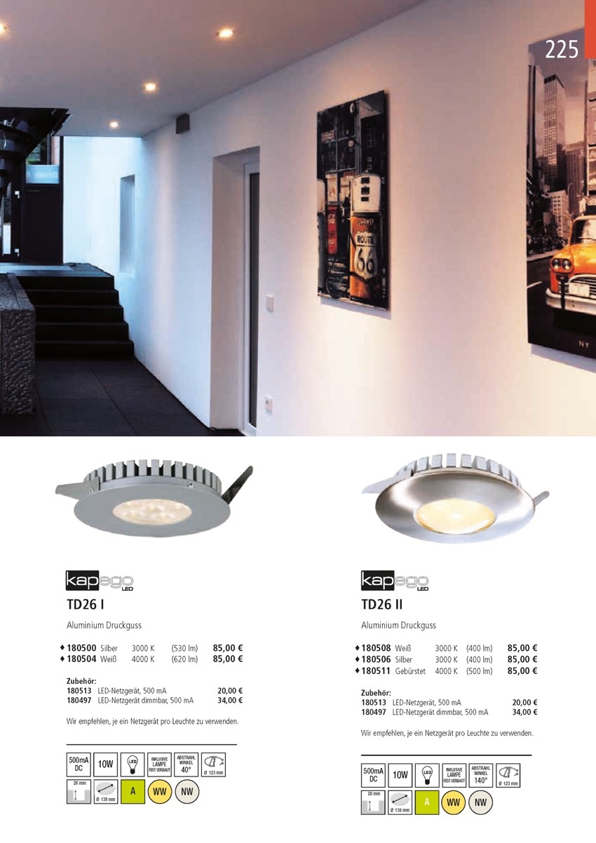 Weiterführende Links zu "Deckeneinbauleuchte, TD26 II, stromkonstant, 20V, 500 mA, 10,00 W"