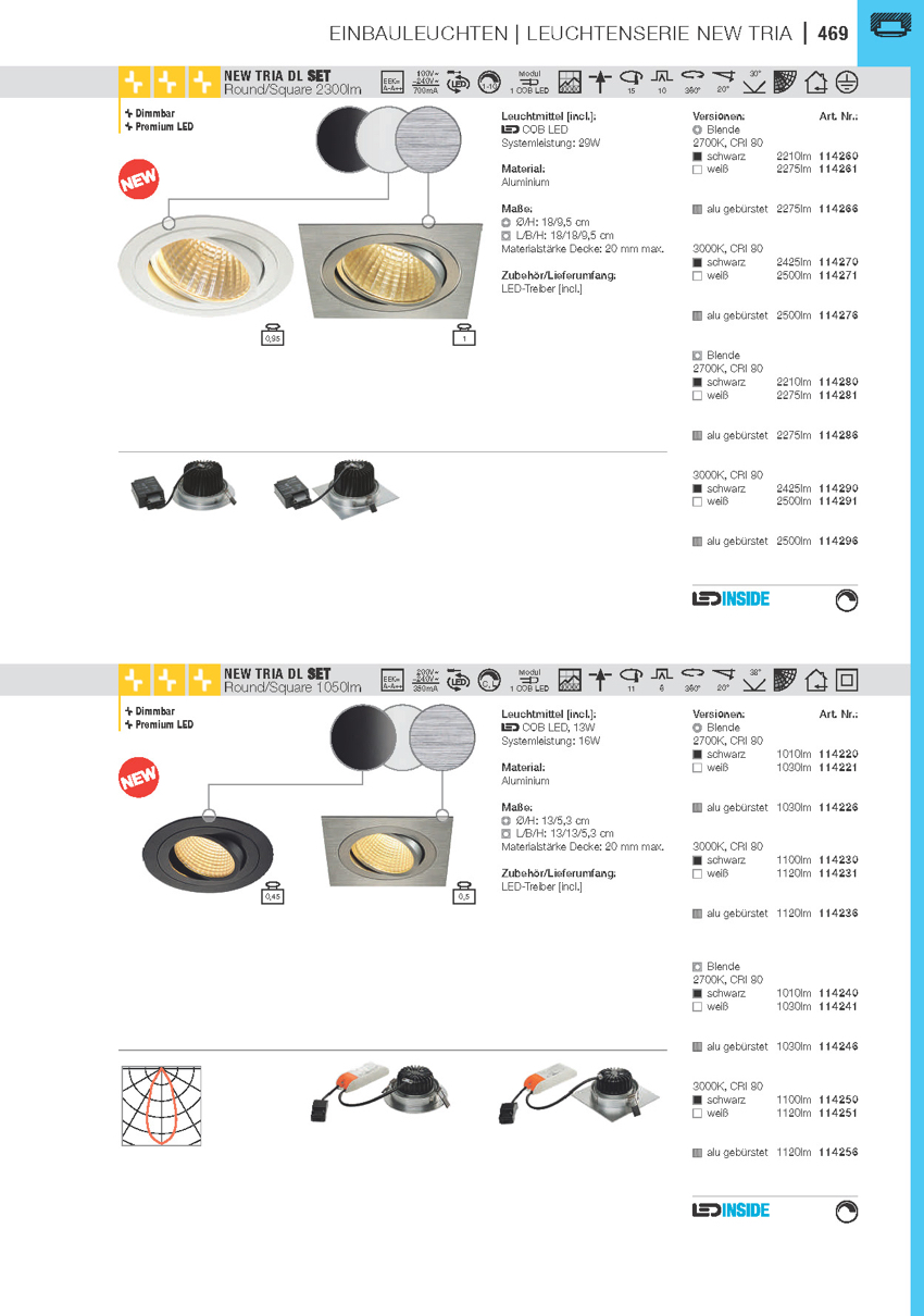 Weiterführende Links zu "NEW TRIA DLMI, Einbauleuchte, LED, 3000K, eckig, silbergrau, 60°, schwenkbar, inkl. Clipfedern"