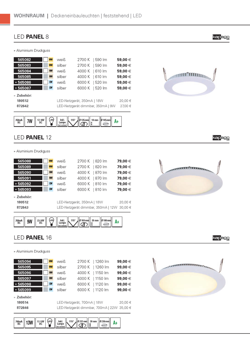 Weiterführende Links zu "Deko-Light Deckeneinbauleuchte, LED Panel 16, Aluminium Druckguss, Silber, Kaltweiß, 115°, 13W"