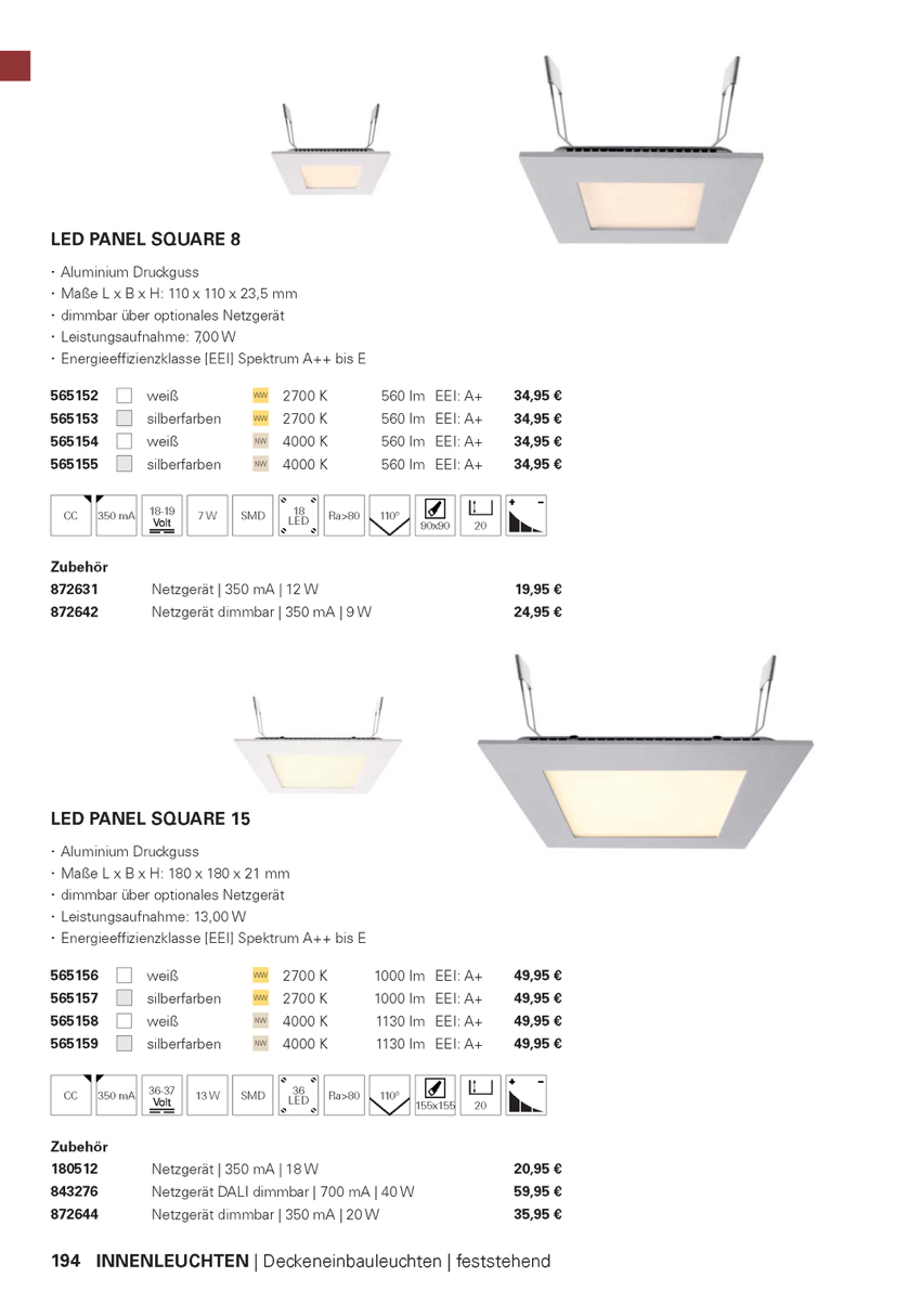 Weiterführende Links zu "Deko-Light Deckeneinbauleuchte, LED Panel Square 15, 13 W, 4000 K, Grau, Aluminiumdruckguss, 13W"