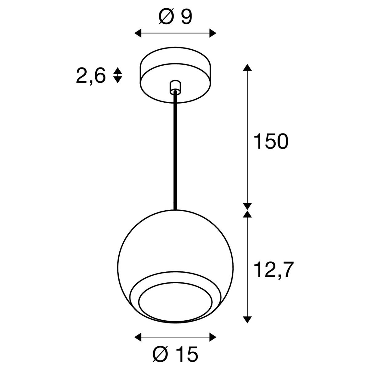 - Deckenabhängung: 150,00 cm