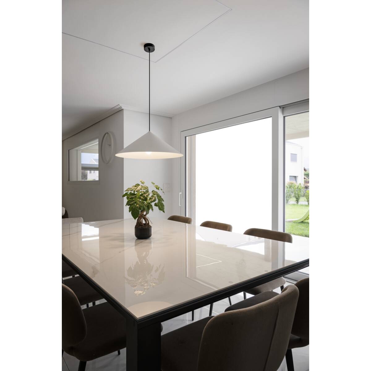 Die MAGICO Pendelleuchten sind elegante, konusförmige Leuchten, die in drei Größen und je drei Farbvarianten erhältlich sind. In Matt Schwarz, Matt Weiß oder einer Kombination aus Schwarz und Gold bieten sie vielfältige Gestaltungsmöglichkeiten. Mit ihrem offenen Kabelende und einem passenden Adapter lassen sie sich auch in ein Schienensystem integrieren.