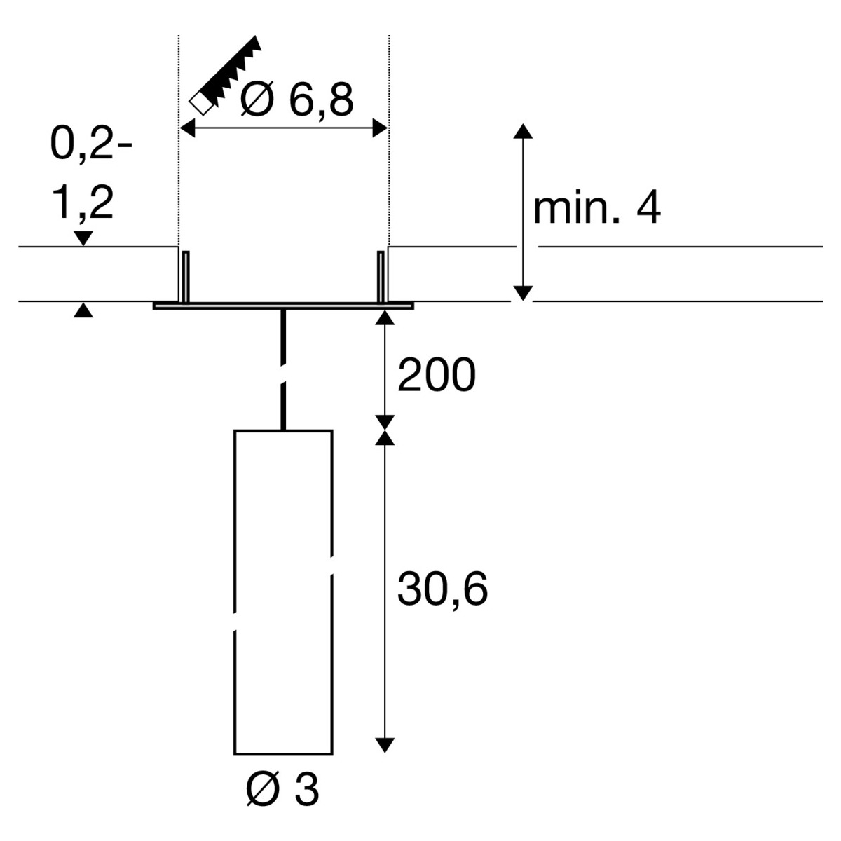 - Deckenabhängung: 200,00 cm