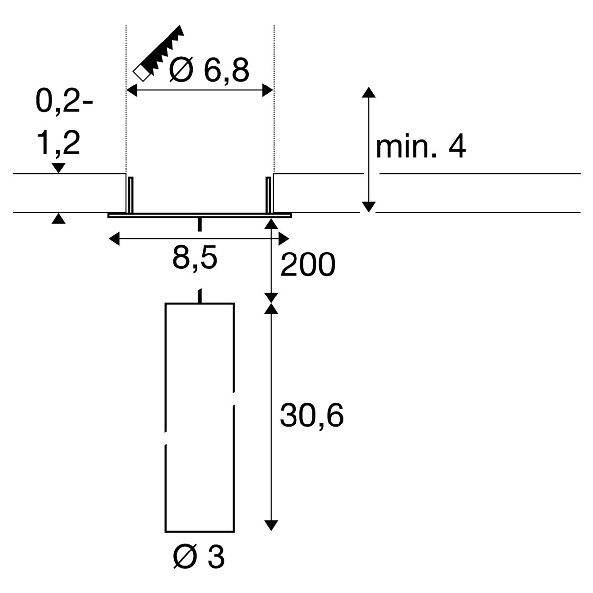 - Deckenabhängung: 200,00 cm