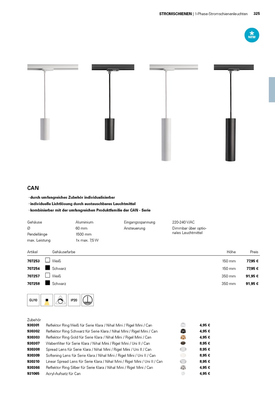 Weiterführende Links zu "Deko-Light 1-Phasen-Pendelleuchte, Can 350, 1x max. 7,5 W, GU10, Weiß, Aluminium, Weiß, 7W, 230V"