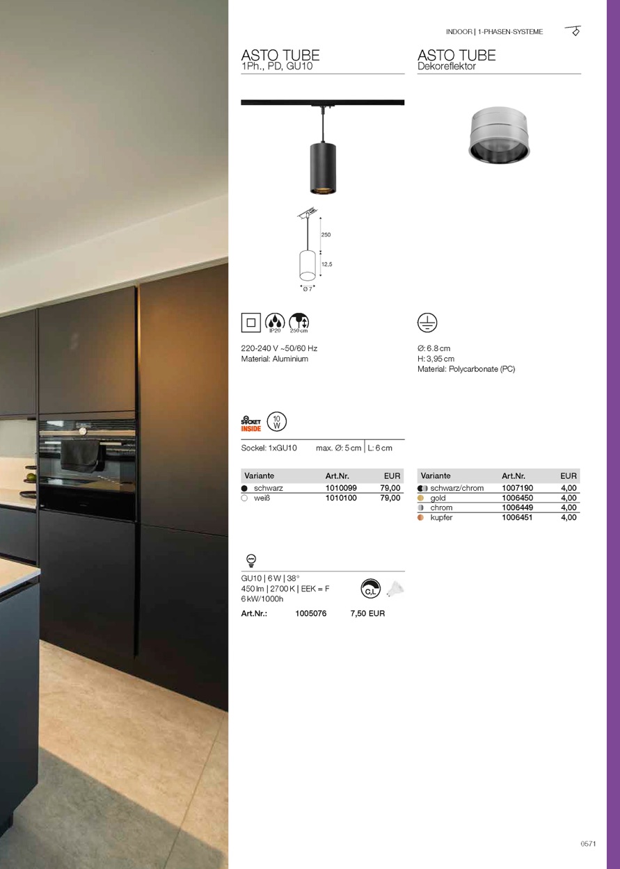 Weiterführende Links zu "LED 1-Phasen Pendelleuchte ASTO TUBE, 1x GU10, max. 10W, IP20, dimmbar, 640lm"