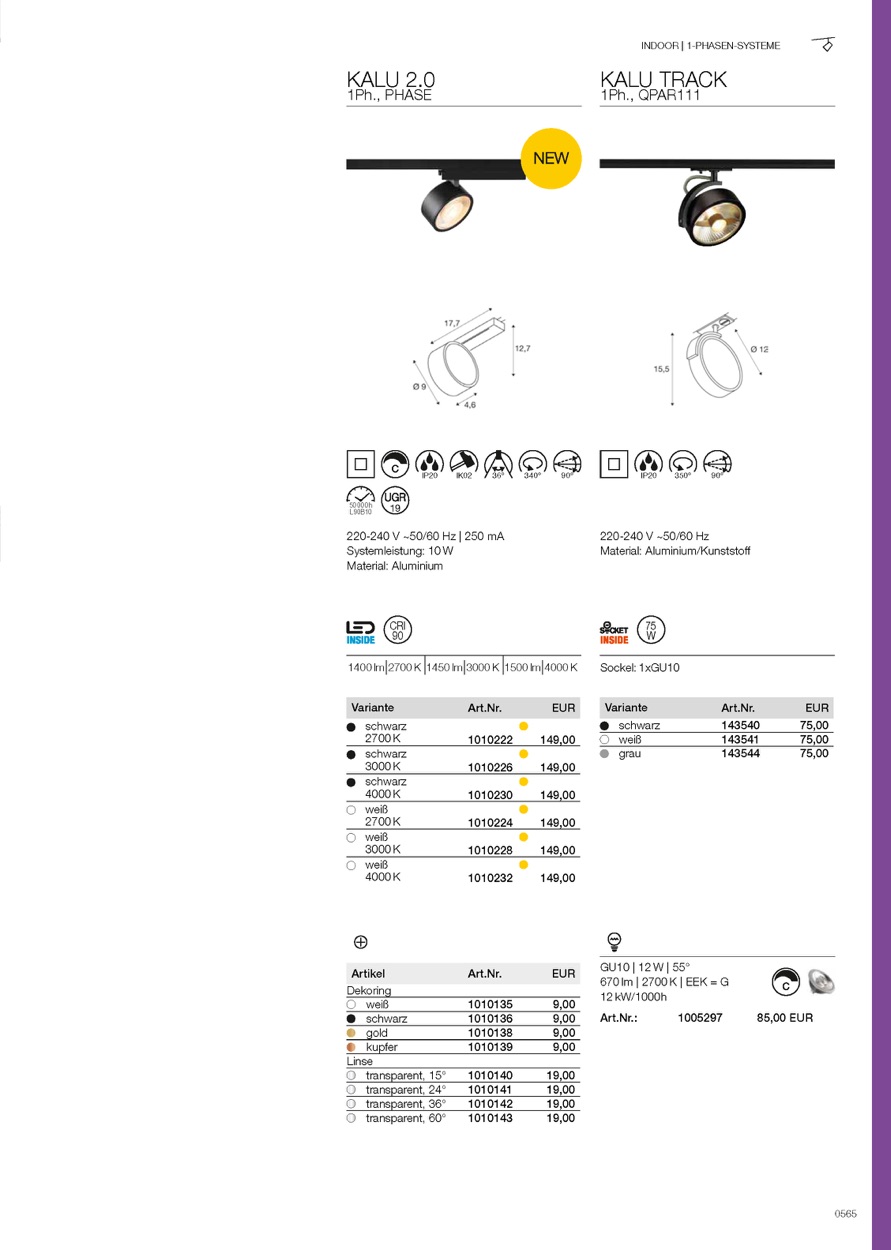 Weiterführende Links zu "LED 1-Phasen Strahler KALU 2.0, 36 Grad zylindrisch, , 10W, IP20, dimmbar mit"