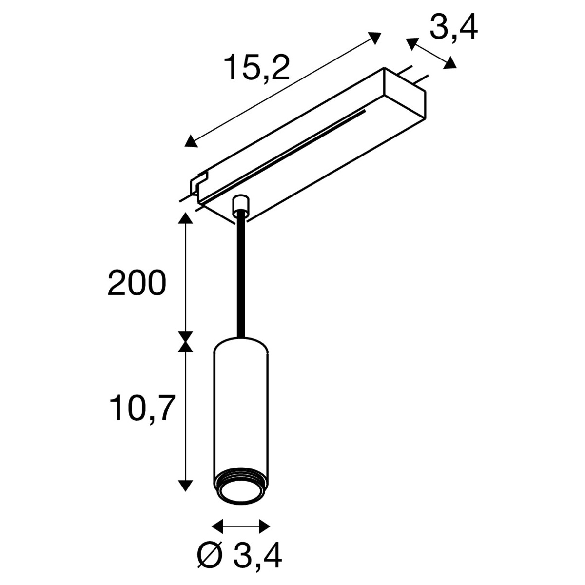 Abmessungen: Höhe: 10,70 cm Produkt ø: 3,45 cm Deckenabhängung: 200,00 cm... mehr