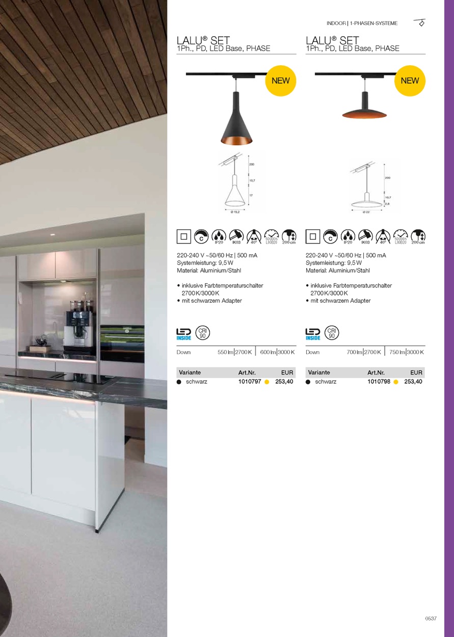 Weiterführende Links zu "LED 1-Phasen Pendelleuchte LALU SET 22, ELYPSE 40 Grad , 10W, 2700/3000K, 700lm"
