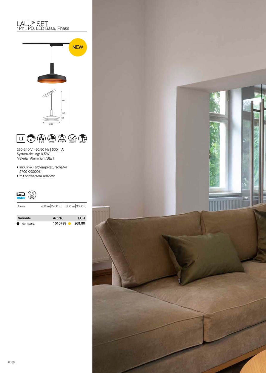 Weiterführende Links zu "LED 1-Phasen Pendelleuchte LALU SET 24, TETRA 40 Grad , 10W, 2700/3000K, 700lm"