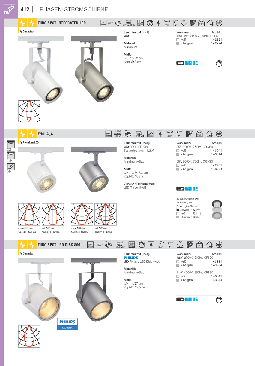 Weiterführende Links zu "EURO SPOT LED DISK 800, Spot für Hochvolt-Stromschiene 1Phasen, LED, 2700K, weiß, 60°, 12W"