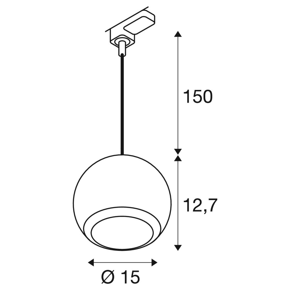 3-Phasen Pendelleuchte LIGHT EYE 150, Durchmesser 15cm, GU10 QPAR111 max. 13W