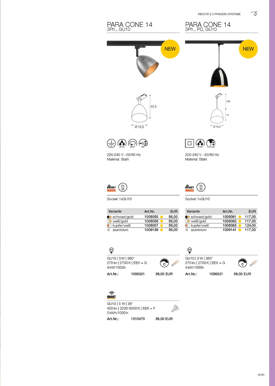 Weiterführende Links zu "3-Phasen Leuchte PARA CONE 14, GU10, IP20, dimmbar, aluminium"