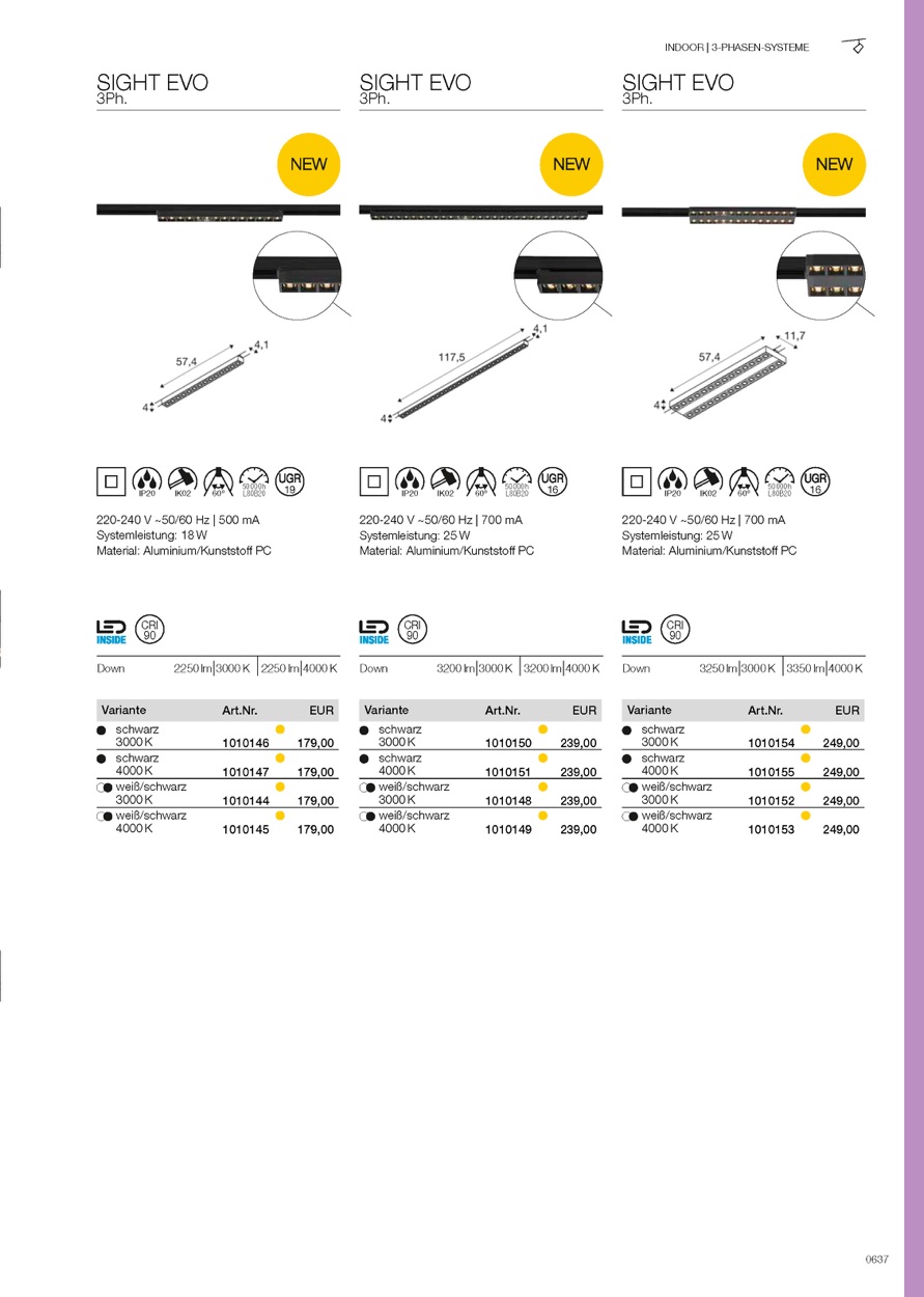 SIGHT EVO – die flexible 3-Phasen-Schienenstrahler-Serie für perfekte Akzentbeleuchtung. Mit ein- oder doppelflammigen Spots, CCT-Optionen (3.000/4.000 K) und zwei Systemleistungen (18 W / 25 W) setzt sie Shops, Galerien oder Showrooms optimal in Szene. Mit UGR<19 und CRI>90 überzeugt SIGHT EVO mit erstklassiger Lichtqualität. Die DALI-Option und die unkomplizierte Installation machen die Leuchte perfekt für vielseitige Einsätze.
