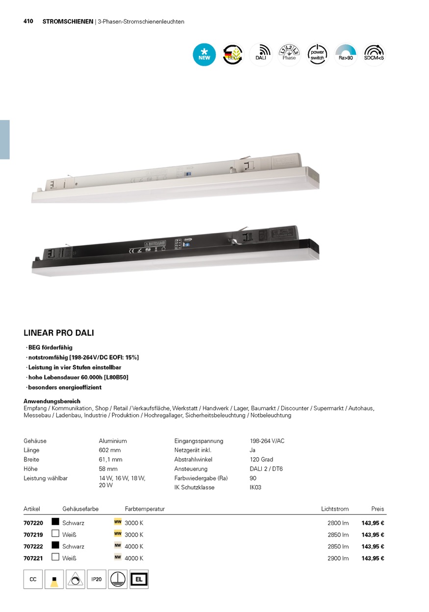 Kundenbewertungen für "Deko-Light 3-Phasenleuchte, Linear Pro 60, 20 W, DALI, 4000 K, Weiß, Aluminium, Weiß, 120°, 14W"