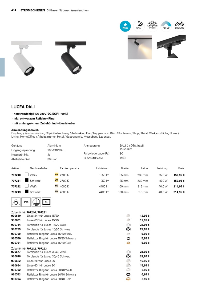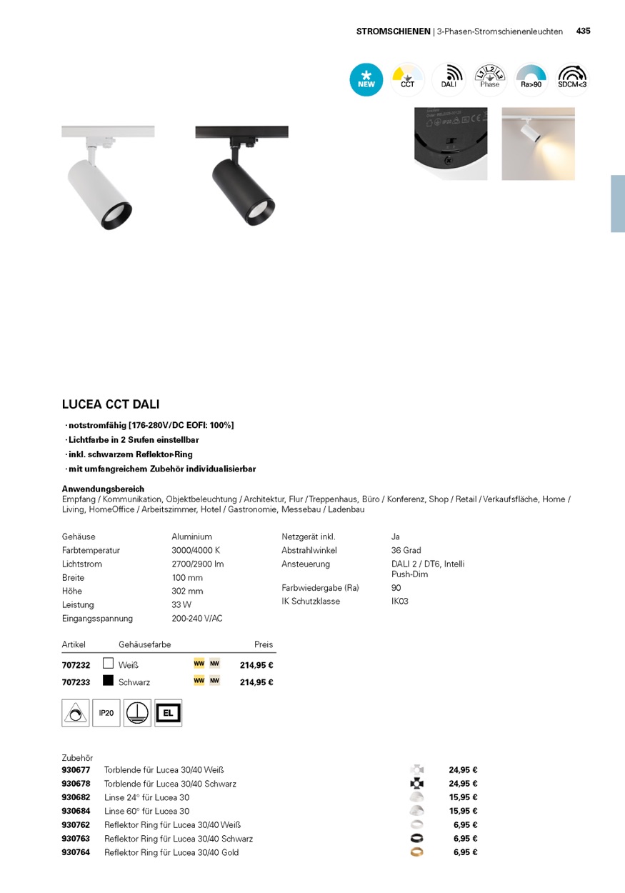 Weiterführende Links zu "Deko-Light 3-Phasen-Spot, Lucea 40 Tilt, 40 W, DALI, 4000 K, Weiß, Aluminium, Weiß, 36°, 230V"