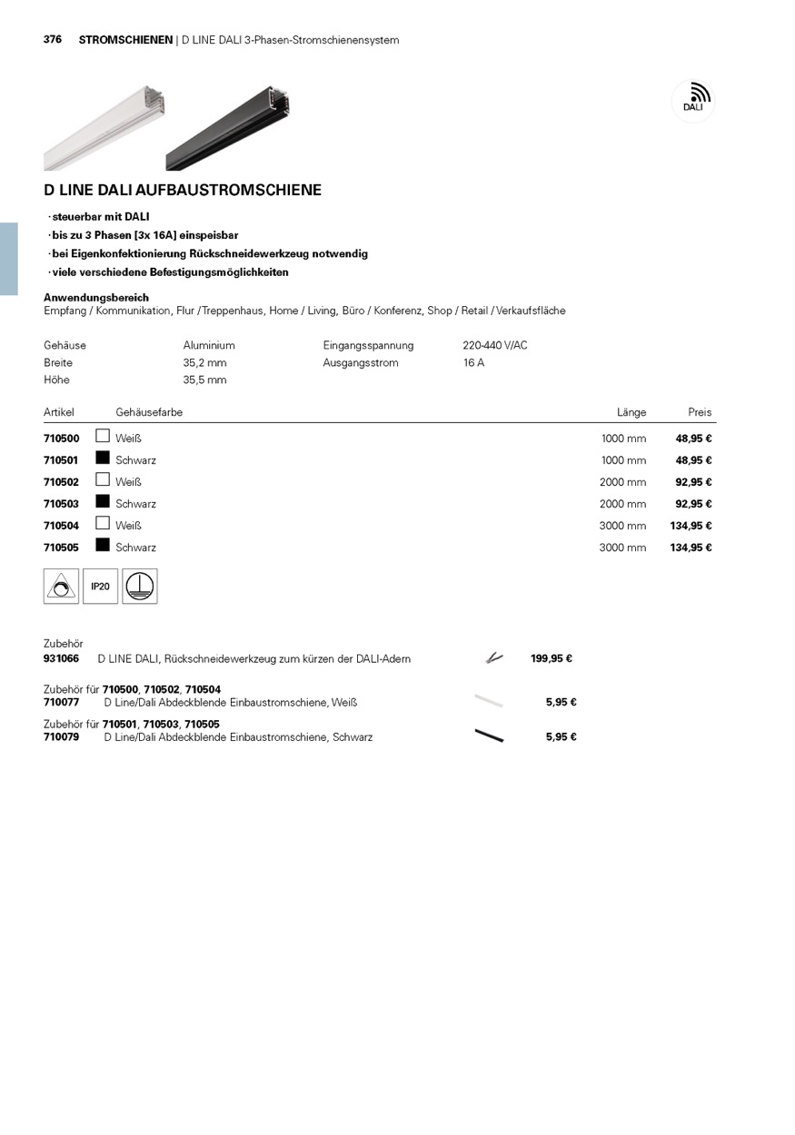 Weiterführende Links zu "Deko-Light 3-Phasen Schienensystem, D Line DALI Aufbaustromschiene 1m, schwarz, Aluminium, Schwarz"